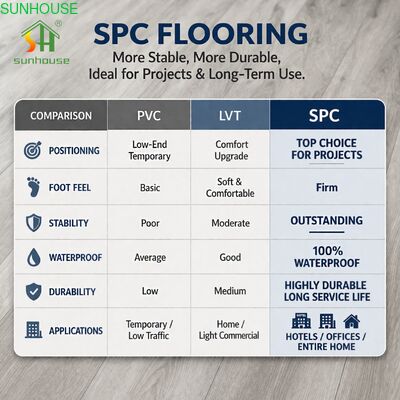ออกแบบมาสำหรับผู้รับเหมาโครงการ นักพัฒนาอสังหาริมทรัพย์ และผู้จัดจำหน่ายระดับภูมิภาคที่ไม่สามารถยอมรับความล้มเหลวของพื้นระหว่างการก่อสร้างได้ พื้น SPC แกนแข็ง Huiju SPC ผสมผสานฐานหิน-พลาสติกความหนาแน่นสูงเข้ากับโปรไฟล์การล็อคแบบคลิกที่แม่นยำในห้าตัวเลือกความหนา — 4.0, 4.5, 5.0, 6.0 และ 6.5 มม. ไม่ว่างานจะต้องการแผ่นปูพื้นสำหรับที่พักอาศัยน้ำหนักเบา หรือแผ่นที่มีชั้นสึกหรอ 0.7 มม. ที่ได้รับการจัดอันดับสำหรับการจราจรเชิงพาณิชย์หนักระดับ Class 42 ซัพพลายเออร์รายเดียวครอบคลุมช่วงข้อมูลจำเพาะทั้งหมด แกนที่ไม่ใช่ไม้ช่วยขจัดโหมดความล้มเหลวที่เกี่ยวข้องกับความชื้นทั้งหมดที่เกี่ยวข้องกับลามิเนตและไม้แปรรูป ในขณะที่การจำแนกประเภทไฟ Bfl-s1 และตัวเลือกการกันลื่น R10/R11 เปิดผลิตภัณฑ์สำหรับอาคารประเภทที่พื้นไวนิลมาตรฐานไม่สามารถระบุได้ กล่องส่งออกห้าชั้นพร้อมเอกสารการโหลดภาพถ่ายเต็มรูปแบบช่วยลดความล่าช้าในการตรวจสอบท่าเรือและข้อพิพาทด้านประกันภัยในการขนส่งระหว่างประเทศ