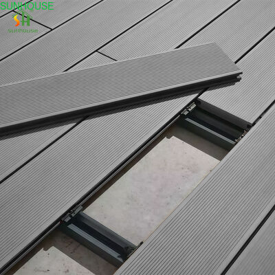 Surface grain and embossing are pressed directly into the board face during extrusion, giving each plank a consistent natural wood appearance without paint or veneer. The composite material resists moisture, rot, insects, and UV degradation at the material level — not through surface coatings that wear away over time. The result is a decking board that performs reliably in outdoor conditions year after year with minimal upkeep.
